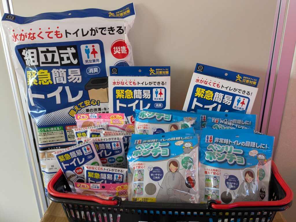 先着100名様に、震災時に役立つ「簡易トイレ」「防寒用ブランケット」「簡易トイレ用目隠し」といった防災必需品をランダムで1個プレゼントいたします。これらはネコポス、またはゆうパケットにて送料当方負担で発送予定です。